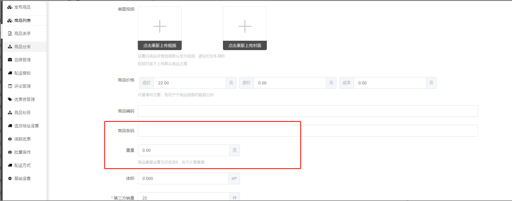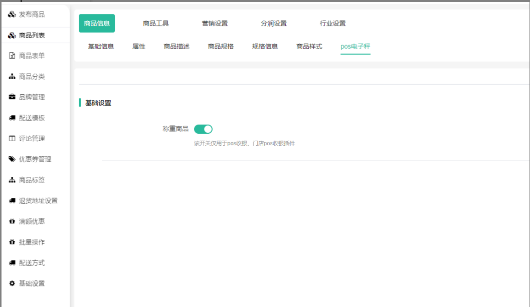 二、商品列表-发布商品/编辑:新增pos电子秤挂件