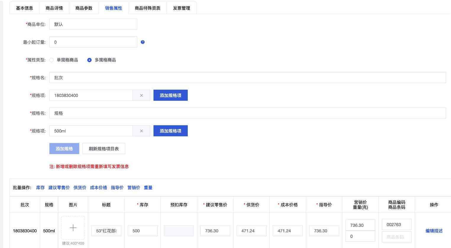 多规格设置