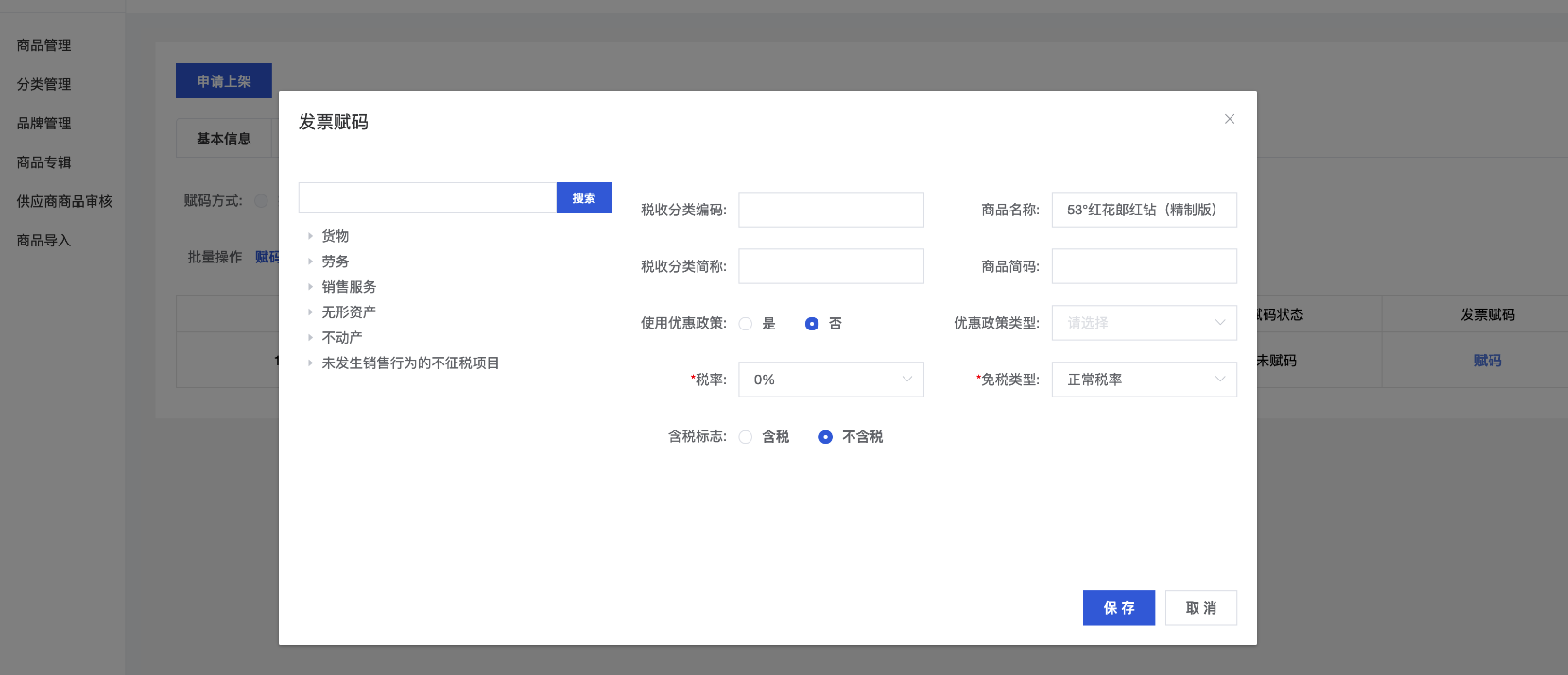 支持给发票进行赋码,便于下游同步商品发票信息、快速开票等。