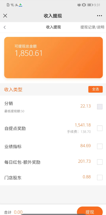 四、业绩奖励提现设置,前端提现