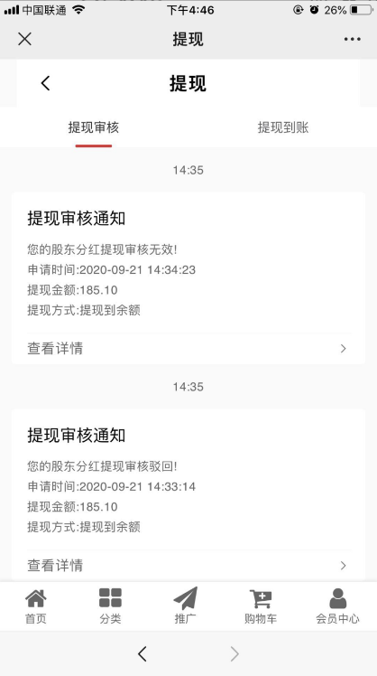 5、提现通知列表