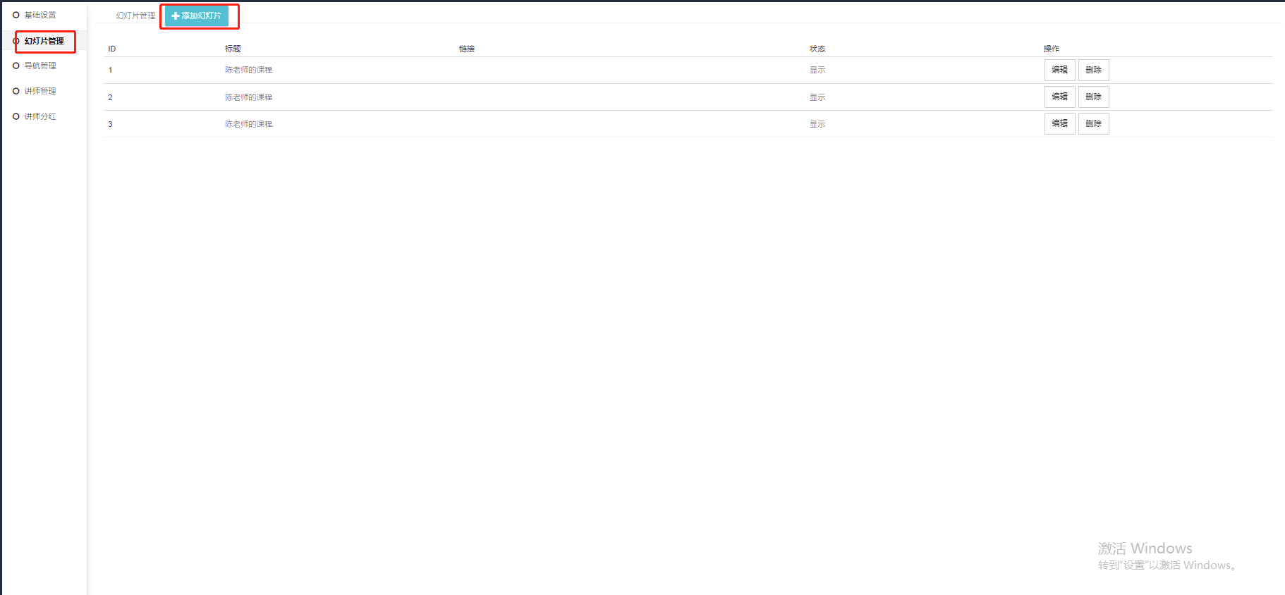 4.2选择行业设置-课程设置-开启课程点播-设置讲师-输入腾讯云转码链接加S后的链接,保存。
