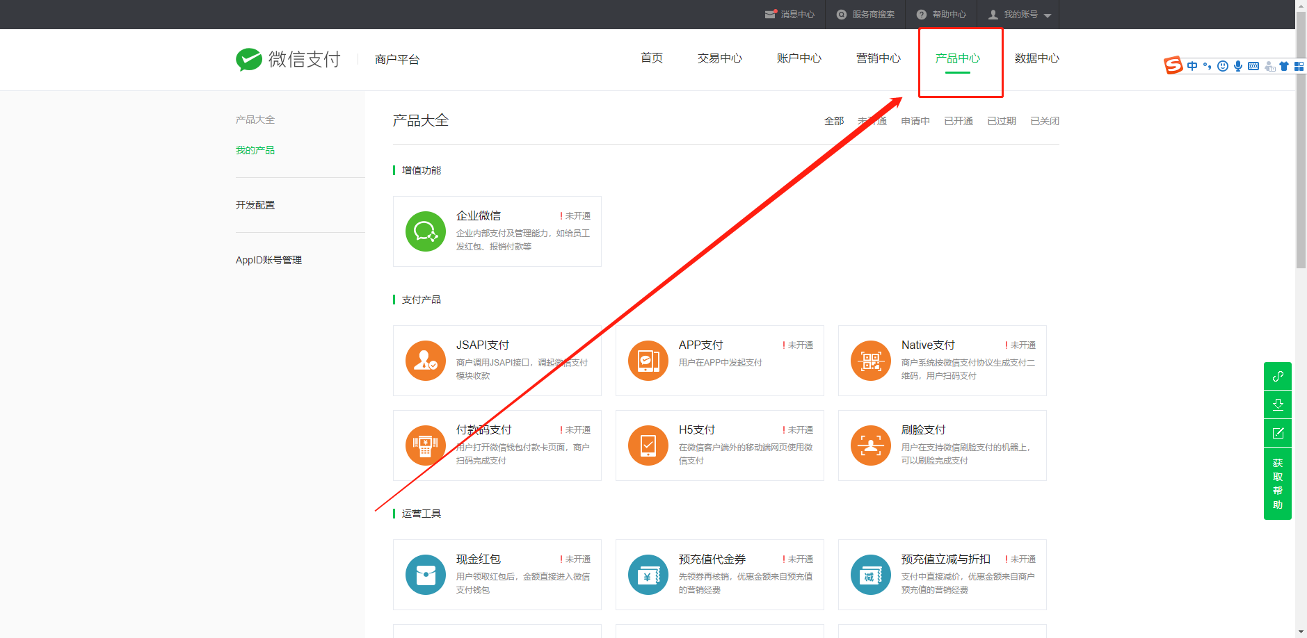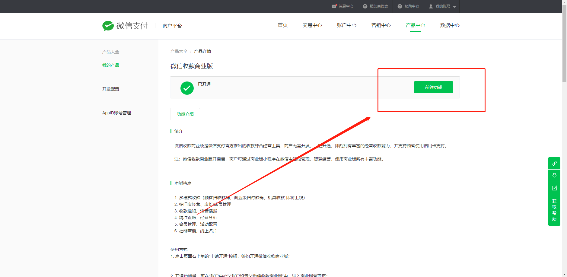 1.产品中心-微信支付商家助手