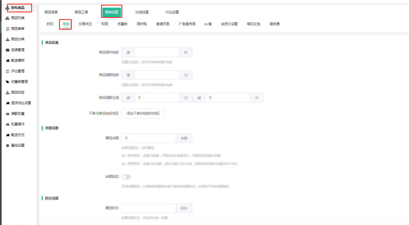 5.商品可单独设置积分赠送抵扣规则