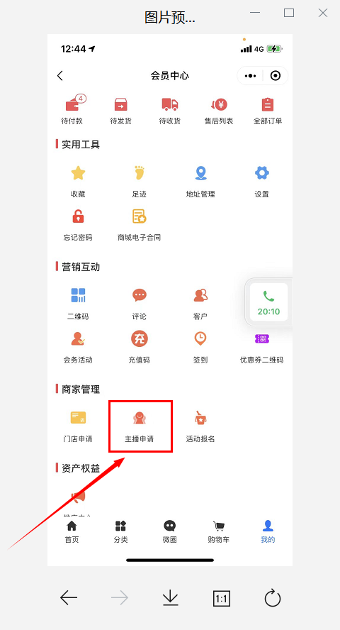 1、需要在商城小程序/公众号商城/app商城个人中心申请主播身份